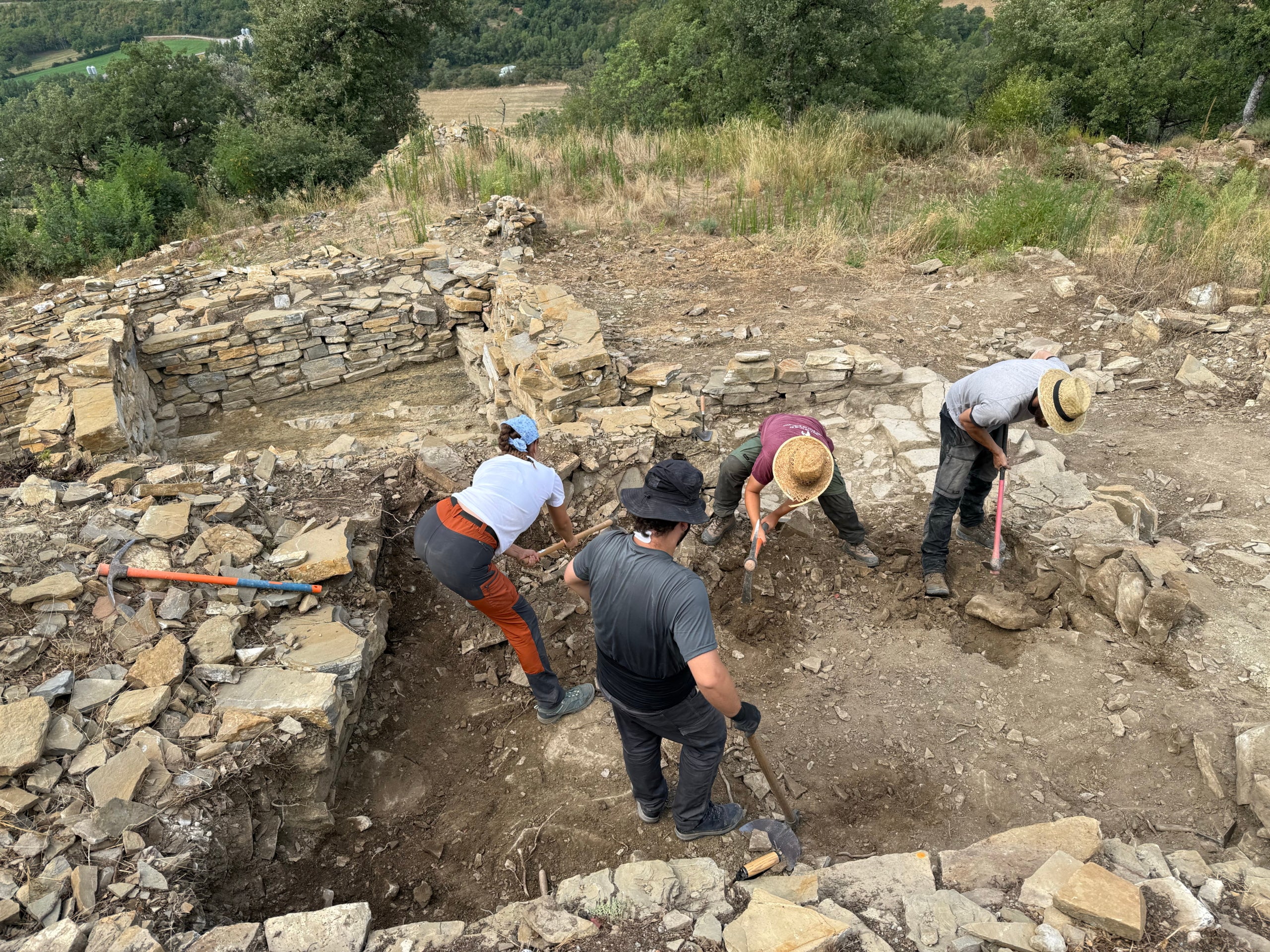 Tal com ha relatat el codirector de l’excavació, els treballs arqueològics s’han centrat en dos objectius principals. Per una banda, segons assegura Vallverdú, conèixer com és l’urbanisme o l’organització d’aquest poblat, i, de l’altra, mirar de datar quin és l’abandonament i la fundació dels edificis que s’hi troben. De moment, durant les excavacions, han fet molt poques troballes, motiu pel qual titllen d’excavació de “bastant pobra”: “Si hagués sigut un abandonament violent o sobtat, segurament haurien localitzat més objectes a l’haver hagut de marxar la gent a correcuita”, argumenta el codirector de l’excavació. L’excavació d’aquest agost s’ha centrat en un sol habitatge que tindria dues ales diferenciades. Vallverdú ha descrit que “s’hi accedeix a partir d’un eix principal o carrer, a través d’un vestíbul o planta baixa, formada per tres estances comunicades entre si, i des d’aquest mateix vestíbul es pot accedir a una planta superior, també formada per tres estances possiblement comunicades”.