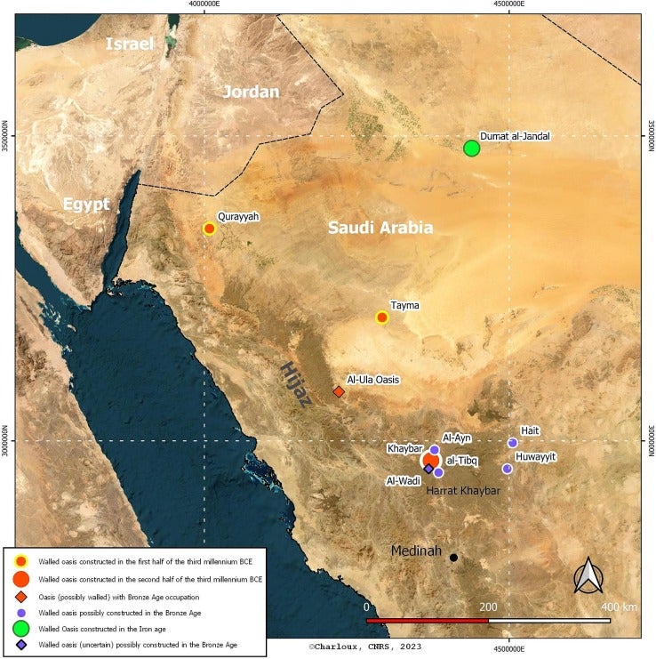 Durante los milenios IV e III, poblaciones sedentarias habitaron los oasis situados en el desierto de Arabia del Norte y ahora, un equipo de científicos del Centre national de la recherche scientifique (CNRS) y de la Royal Commission fo AlUla (RCU) han descubierto una gran construcción defensiva de hace 4000 años que rodeaba el oasis de Jáibar, uno de los más grandes y extensos que se han conocido en la historia.