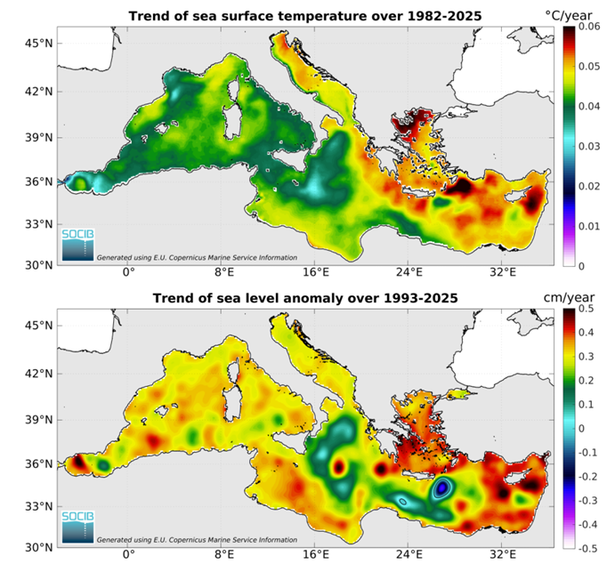 El mar Mediterrani és un dels grans ‘termòmetres’ de l’estat en el qual es troba el clima català. El passat any 2025 el Mediterrani va tornar a batre rècords negatius com són les temperatures oceàniques, la salinitat i el nivell del mar al Mediterrani. El darrer informe “Annual Report 2025: Global Warming Impacts in the Mediterranean Sigui and Balearic Islands Region” del Sistema d’Observació Costaner de les Illes Balears (SOCIB) ha alertat de la situació crítica que travessa el mar que banya les costes catalanes, i ho han pogut demostrar gràcies a les observacions satel·litàries fetes pel Servei Marí de Copernicus i els mesuraments in situ registrats per la infraestructura d’observació oceànica de SOCIB.