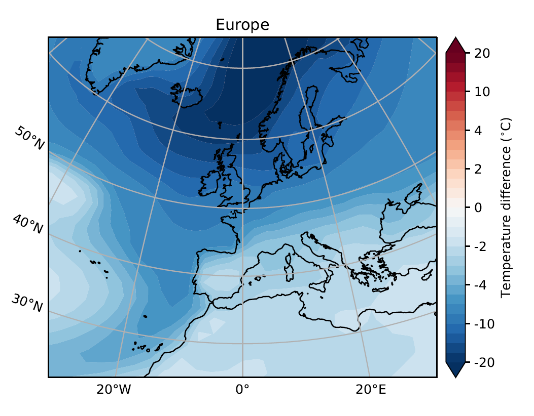 El col·lapse de l’AMOC farà que les temperatures de l’hemisferi sud augmentessin, ja que les aigües càlides no es desplaçarien, i al nord seria al revés. El desgel faria que s’augmentés el nivell del mar a Europa en 100 cm, i països com el Regne Unit, Noruega, Suècia o Islàndia veurien com la seva temperatura baixaria entre cinc i 15 graus de mitjana.